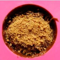 - Triturar 6 g de galleta y ponerlos sobre el relleno de las 6 semiesferas (cuando se desmolde corresponderá con la base interna de la semiesfera).