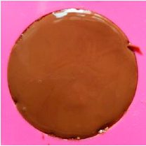 - Se derrite 50 g de chocolate y se le añade la mezcla del punto 1, se remueve. Nota: Necesario un molde de silicona (para que re desmoldado resulte sencillo) de 6 semiesferas de 5 cm de diámetro.