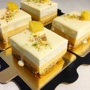Fundamentalmente, repostería francesa (macarons, entremets, quiches, tartaletas dulces…) y anglosajona (cupcakes, layer cakes, cookies, brownies…) y elaboraciones propias, ideales para acompañar un café o un té.