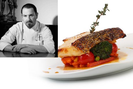 – Raviolis de calabacín rellenos de ave y tomate en tres texturas.